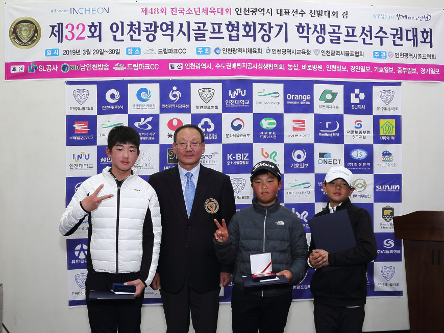 인천광역시 골프협회장기 골프선수권대회 수상식 관련 사진 입니다.