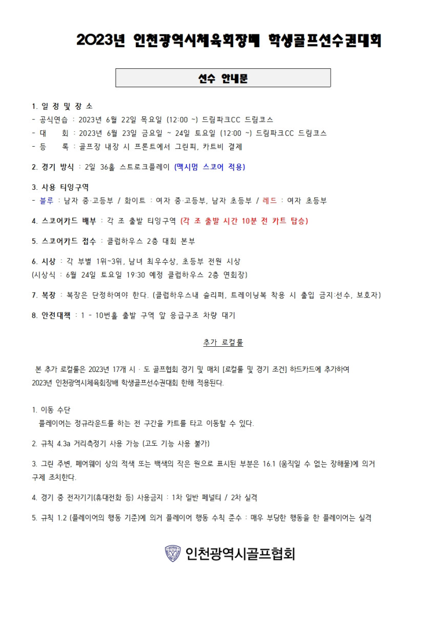 (조편성 -대회 1일차) _ 2023년 인천광역시 체육회장배 학생골프선수권대회